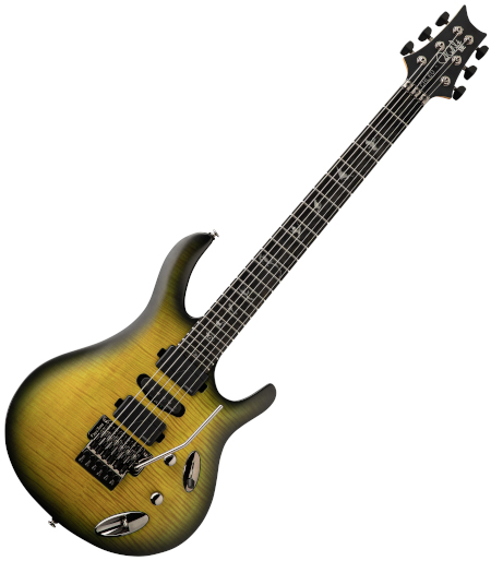 The PRS SE Chleo features a maple top and mahogany back with maple neck and ebony fretboard. The body features a sculpted carve that allows it to be very thin and very lightweight overall, so you can play longer and with more energy. The neck shape and neck joint were specially designed to be comfortable and fast. The neck is very thin front-to-back with a slightly taller playing surface and 20" fretboard radius, and the added high-modulus carbon fiber strength rods ensure a strong neck that promotes sustain. The fretboard features "Eclipse Dragon" inlays, and PRS's trademark scoop has also been modified for ultimate access to the upper frets. All this plus a Floyd Rose locking tremolo mean you can dig in and play hard without sacrifice.
